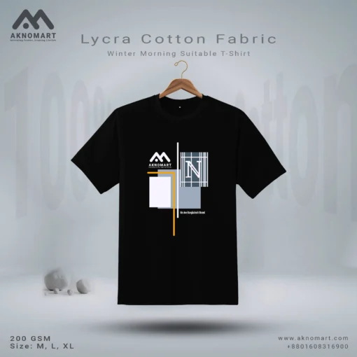 Premium Lycra Cotton Blend T-Shirt – Soft, Stretchy & Comfortable {Black-N}